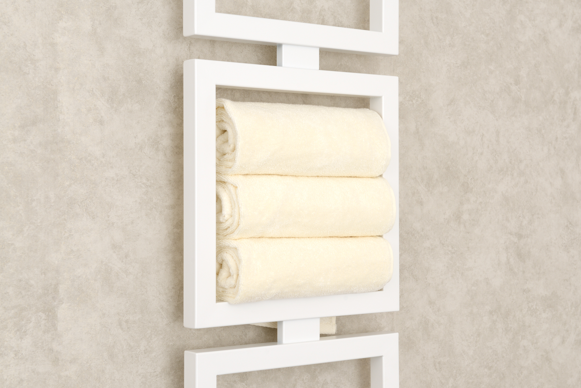 Безупречная геометрия устройства, стильный квадратный профиль перемычек и креплений к стене — каждая деталь этого творения буквально дышит гармонией, воплощая современные тенденции минимализма. Этюд станет элегантным акцентом в интерьере вашей ванной комнаты, превращая её в современное и стильное пространство.