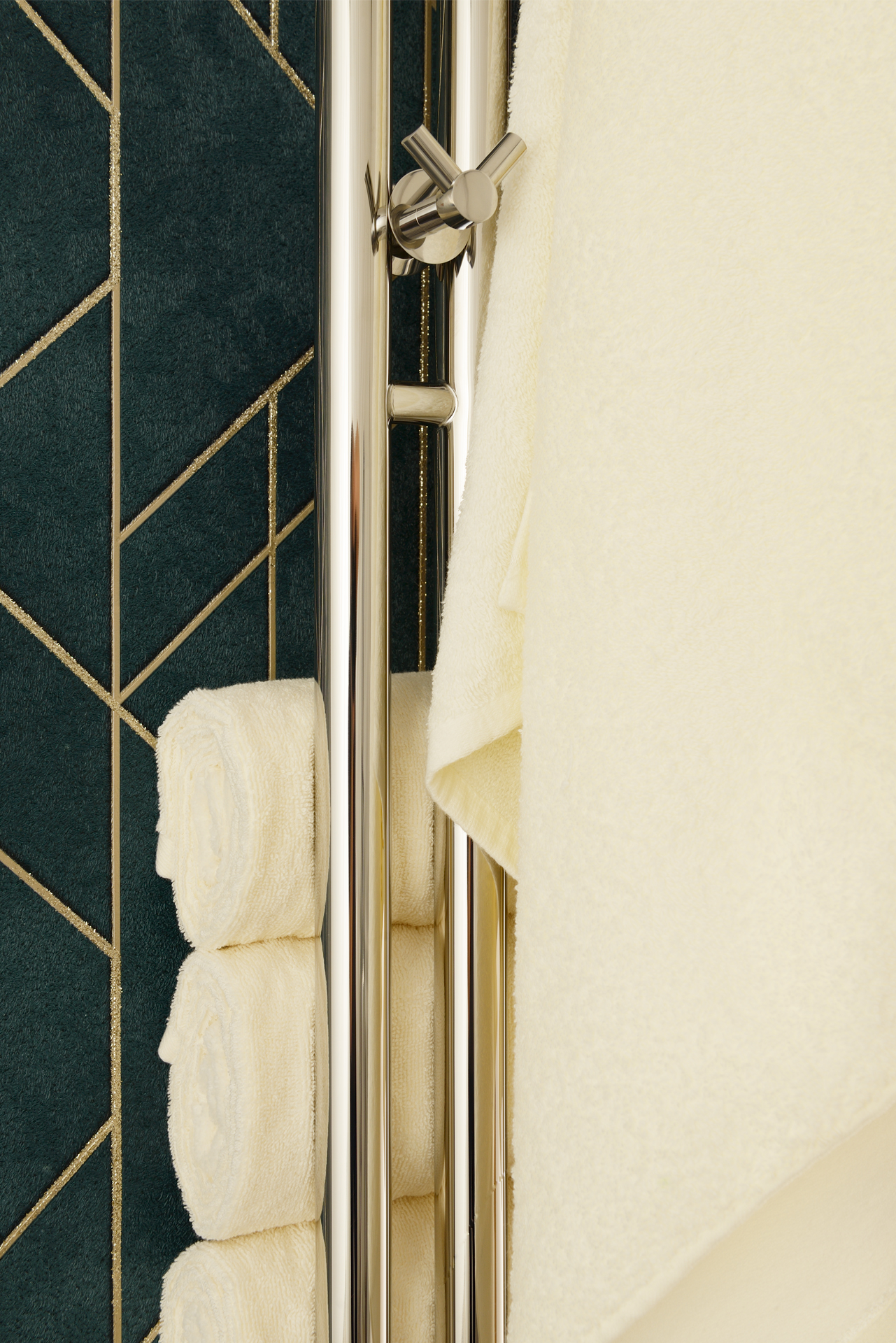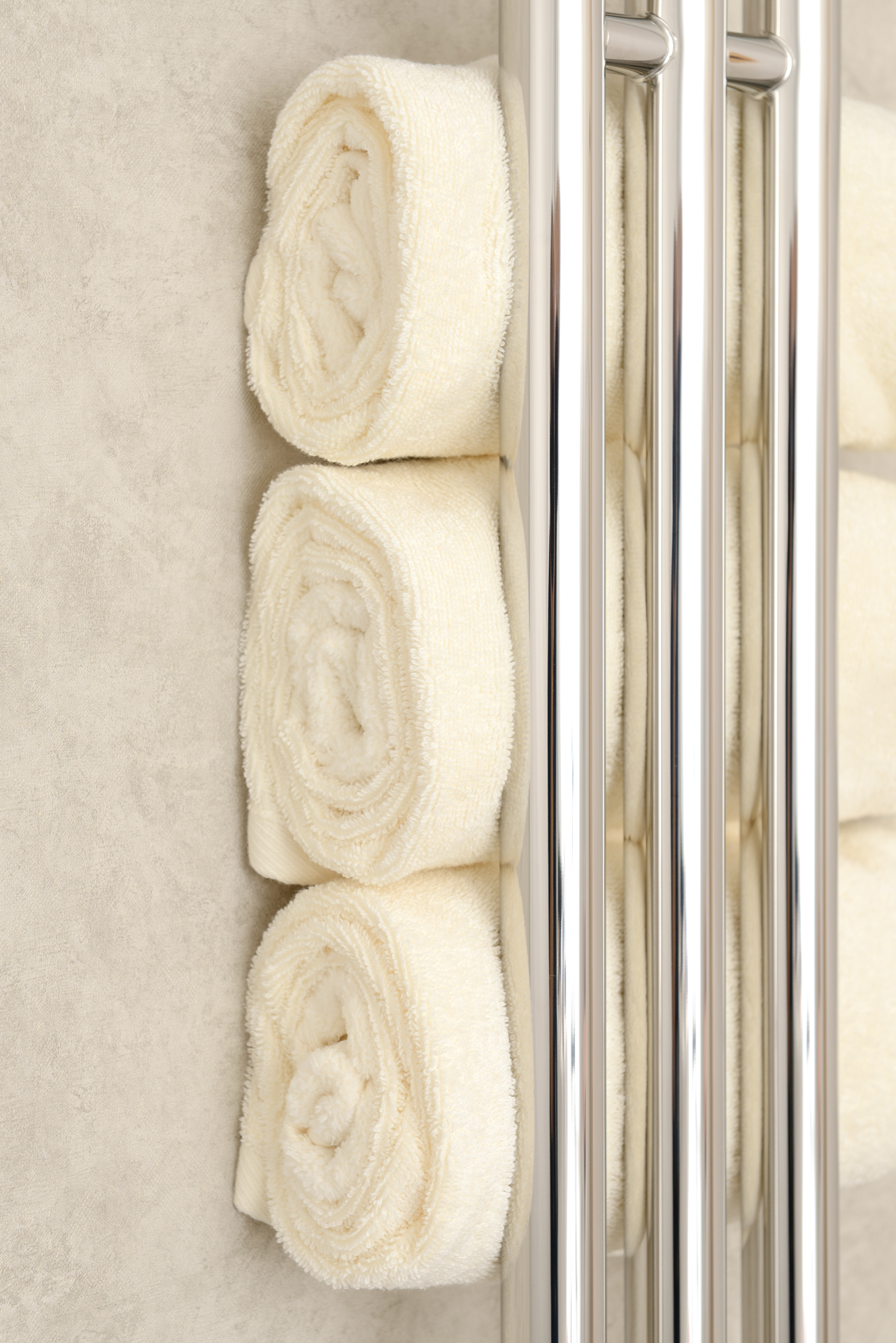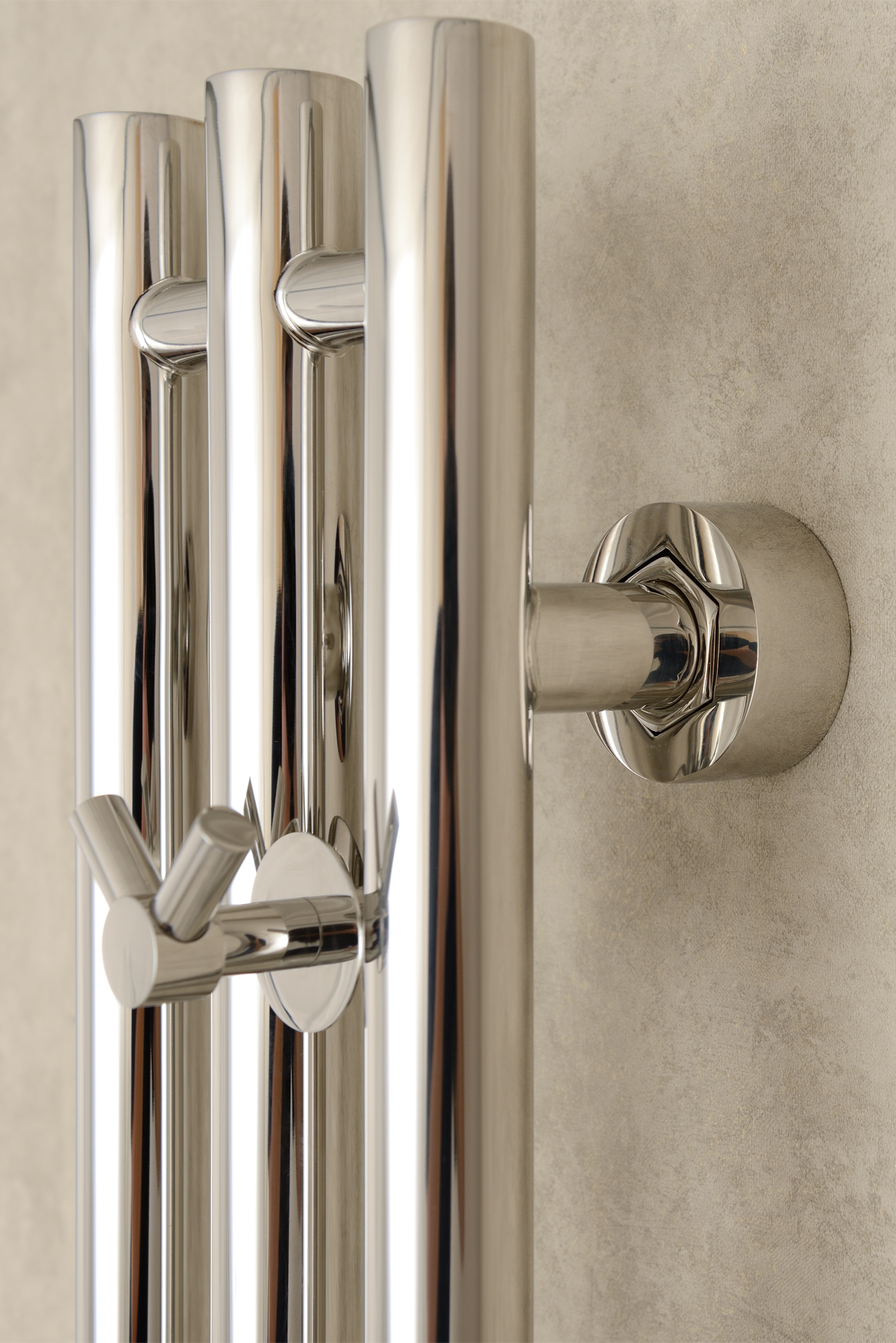 Элегантная модель, ширина которой составляет всего 150 мм, предлагается в двух вариантах высоты: 1200 и 1500 мм. Она идеально подойдёт даже для самых небольших ванных комнат. В комплекте — две двойные вешалки, которые удобно использовать для сушки полотенец.
